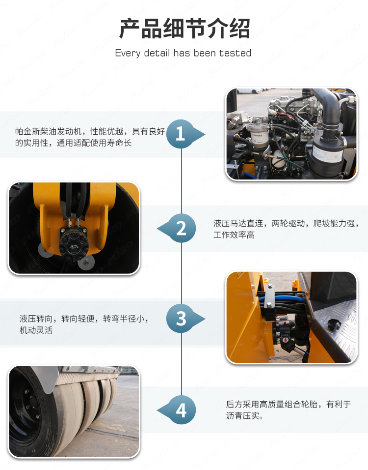 FYL-900T為橡膠輪胎振動壓路機(jī),該壓路機(jī)前有鋼輪,后有橡膠輪,結(jié)合鋼輪和輪胎壓路機(jī)的優(yōu)點(diǎn),具有更高的工作效率。
